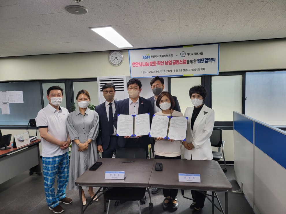 '천안시 나눔 문화 확산 사업 공동 수행을 위한 업무 협약식'을 천안시사회복지협의회 사무실에서 진행하였습니다.